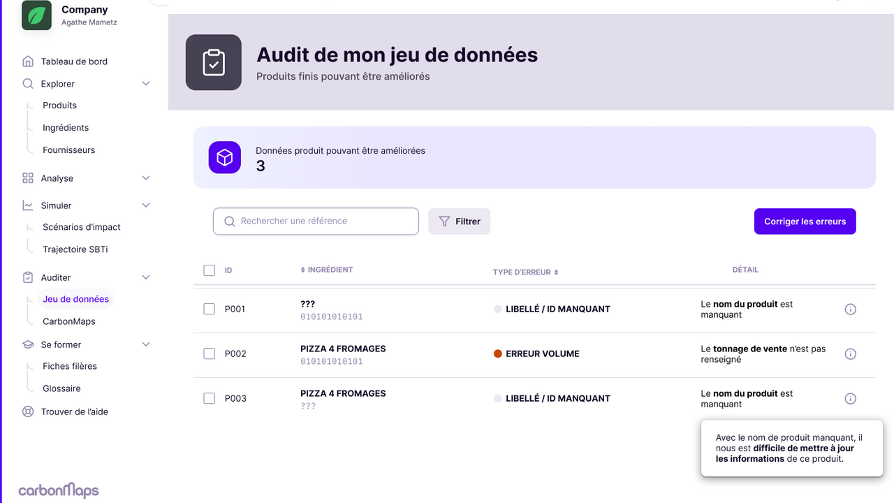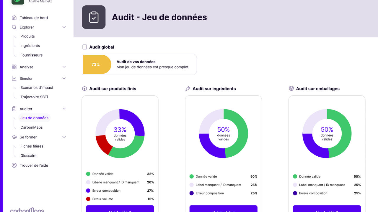 J'ai pu proposer différents écrans, particulièrement pour leur module d'audit des jeux de données, une fonctionnalité alors nouvelle de leur application.