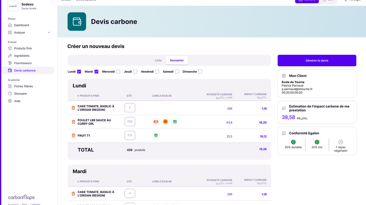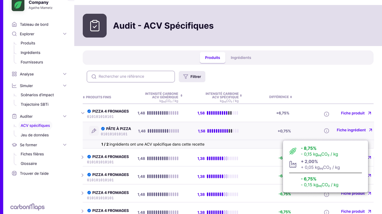 L'application de Carbonmaps permet de calculer, notamment pour les professionnels de la grande distribution ou de l'industrie agro-alimentaire, d'évaluer l'impact carbone et l'impact hydrique de leurs produits.