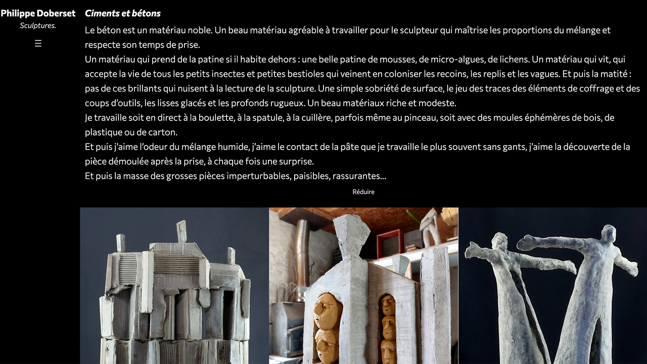 Philippe Doberset est un sculpteur de l'Entre-Deux-Mers, en Gironde. Son atelier est situé dans la commune du Tourne (33).